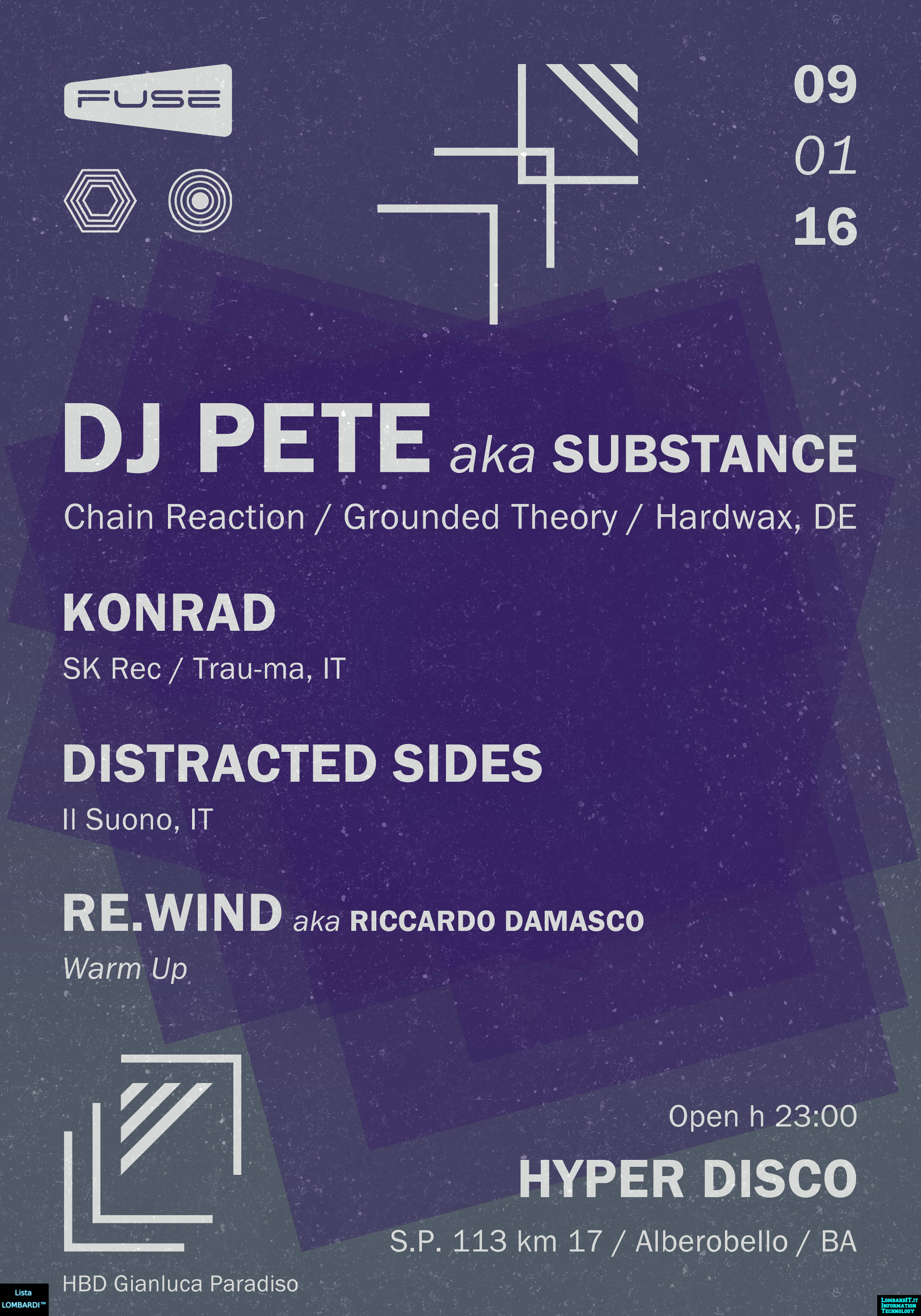 ![FUSE w/ DJ PETE aka SUBSTANCE [Chain Reaction/Grounded Theory/Hardwax] @Hyper Disco](https://www.listal.it/sito/wp-content/uploads/2016/01/20160109_1200.jpg)