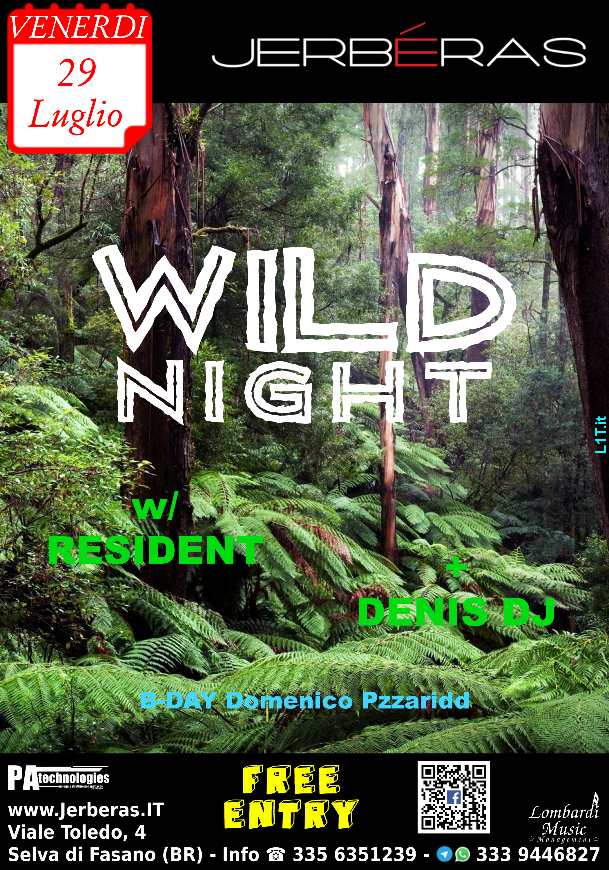 Nuovo grande appuntamento del Summer Program 2016 @ Jerbéras con la WILD NIGHT 1.0 @ Jerbéras (Free Entry)